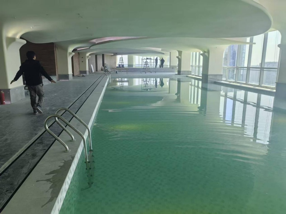 Siguiendo el mismo diseño estético oriental, el área de la piscina cuenta con ventanales panorámicos de piso a techo con vistas directas al río Xiangjiang y la Isla Orange. Por la noche, los huéspedes pueden disfrutar de las luces de la ciudad y los fuegos artificiales sobre Orange Isle, lo que lo convierte en uno de los lugares más populares para tomar fotografías del hotel.